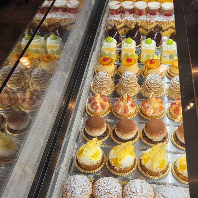 ショーケースには、思わず目を奪われる色とりどりのケーキがずらり。その美しさと香り、味わいが、訪れるすべての人の心をときめかせます。