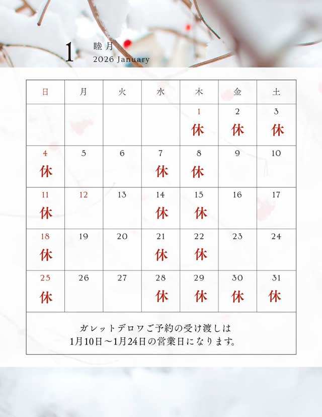 本年も、皆さまの特別なひとときに寄り添えるお菓子をお届けできるよう、スタッフ一同努めてまいります。